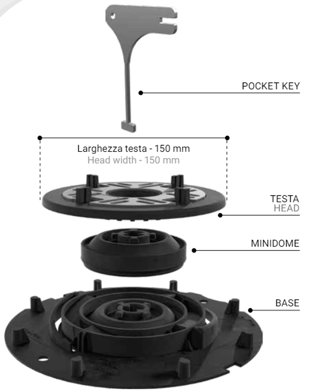 La clé facilite la pose en réduisant le temps de réglage du plot et avec les têtes auto-nivellements permet d’ajuster parfaitement la surface.