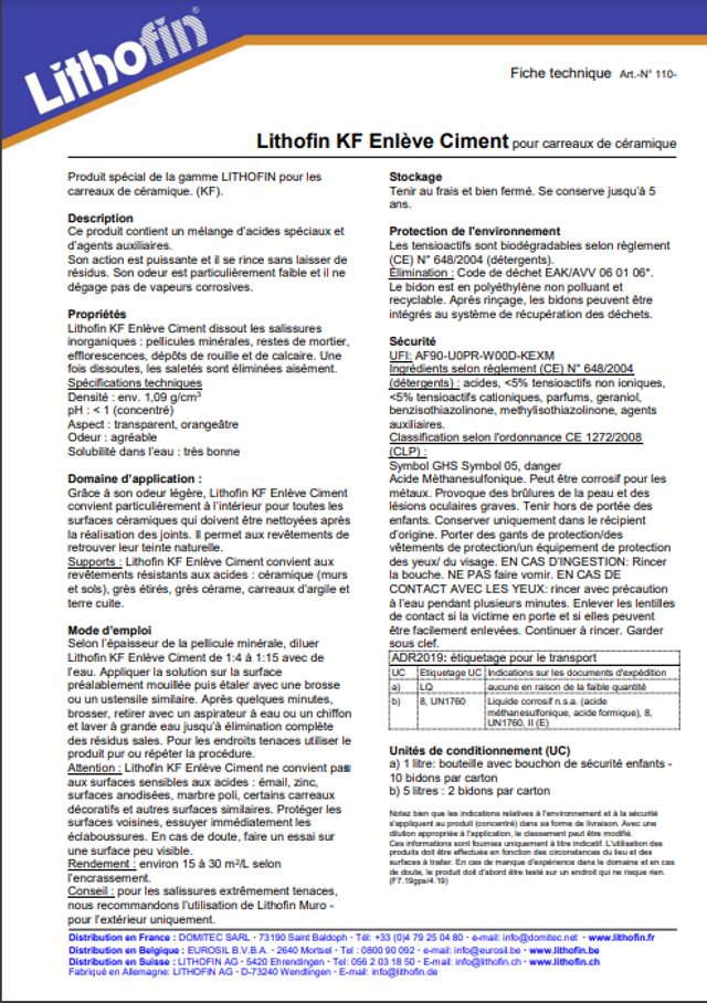 Lithofin KF Enlève ciment 5L