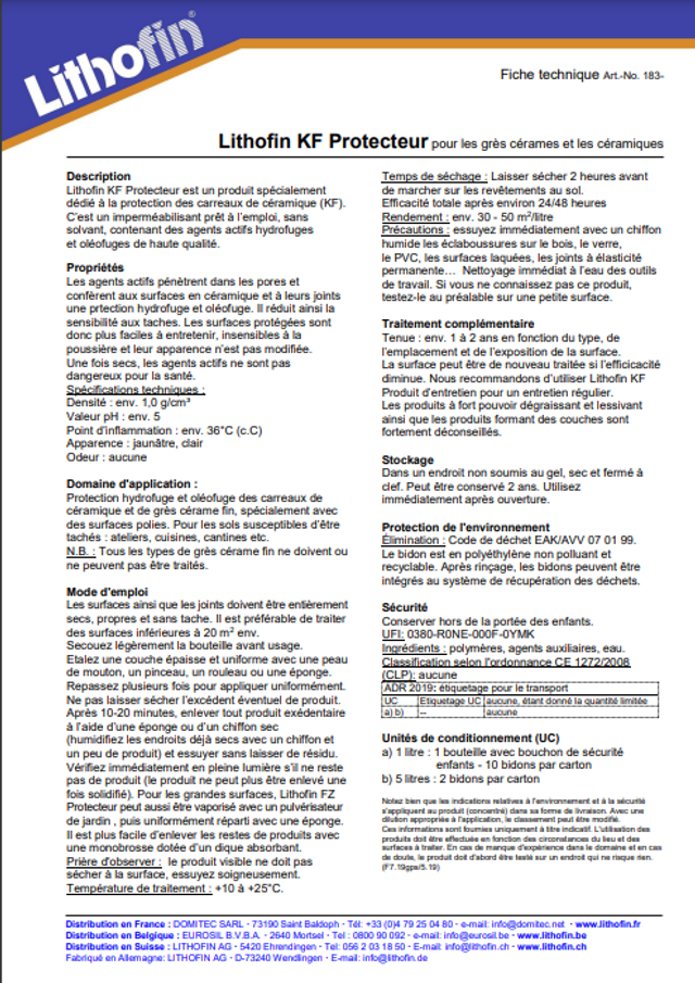Pour le traitement initial des sols neufs, spécialement pour les surfaces polies. L’effet hydrofuge et oléofuge protège considérablement des taches et des salissures. Facilite l’entretien.